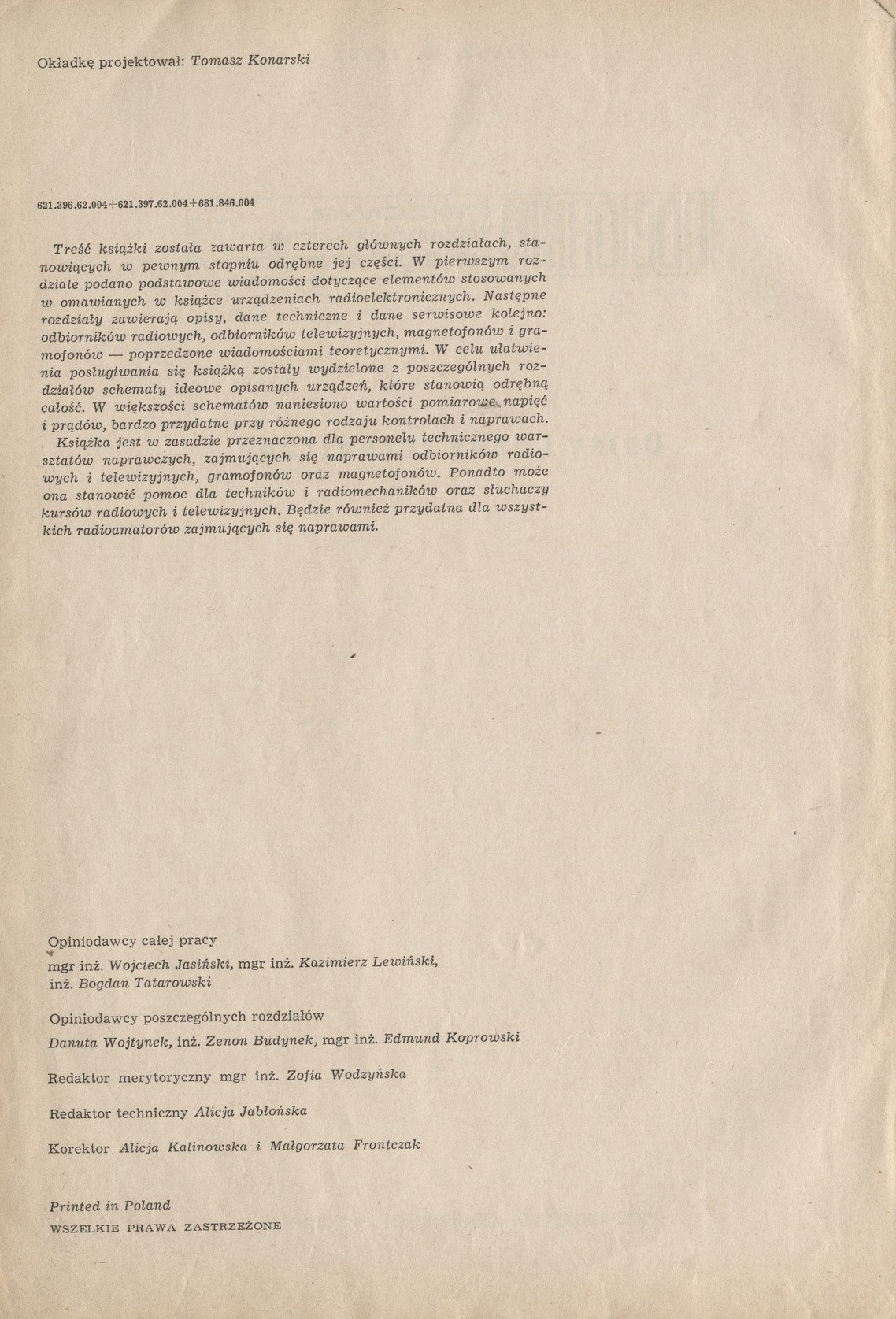 ODBIORNIKI radiowe telewizyjne i magnetofony "Opisy i dane techniczne" J.W Trusz